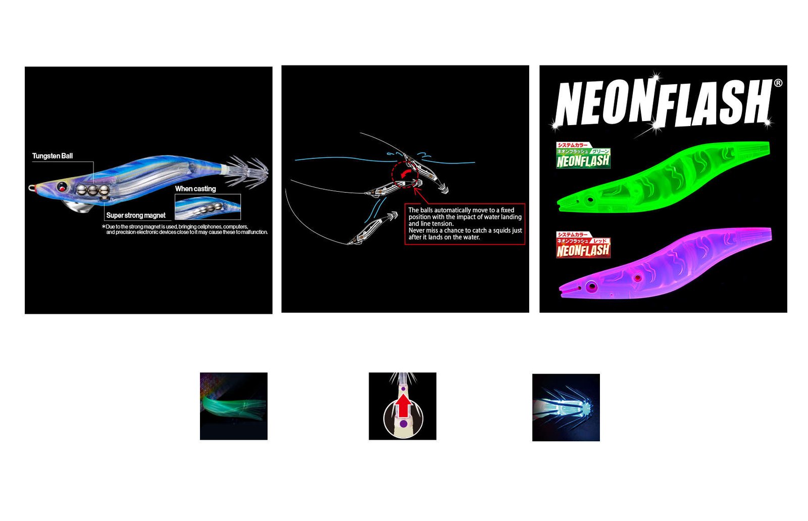 Tipo de señuelo: Jibionera tungsteno revolucionaria (imitación calamar/sepia con densidad y sensibilidad extremas) Especies objetivo: Sepia tungsteno revolucionaria, Calamar mag Q, Pulpo densidad extrema, Choco tungsteno Modalidad de pesca: Eging tungsteno revolucionario