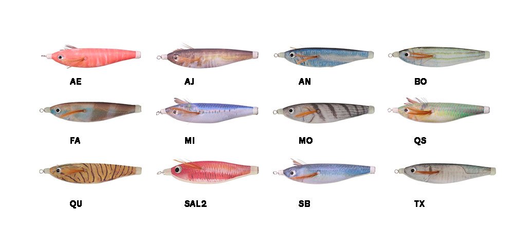 Tipo de señuelo: Jibionera miniaturizada natural (imitación cefalópodo con discreción máxima) Especies objetivo: Sepia altamente selectiva, Calamar altamente selectivo, Pulpo discreto, Choco discreto Modalidad de pesca: Eging discreto natural