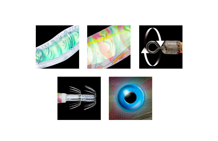 Detalles técnicos • Tipo de señuelo: Jibionera/Egi premium con tecnología 3D • Modalidad de pesca: Eging polivalente desde costa y embarcación • Especies objetivo: Sepia, calamar, pulpo mediano • Tamaño: 3.0 (aproximadamente 90mm) • Acción: Sinking con caída estabilizada • Profundidad de trabajo: 2-10 metros • Técnica recomendada: Jerks variados con pausas controladas
