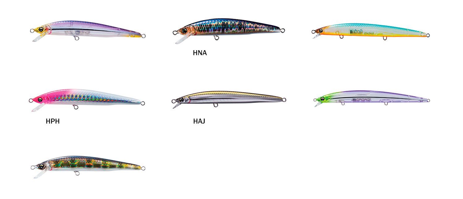 Tipo de señuelo: Minnow larga distancia trofeo (imitación pez con aerodinámica extrema amplificada) Especies objetivo: Lubina larga distancia trofeo, Dorada super long cast grande, Seriola distancia trofeo, Bacoreta lanzamiento trofeo, Palometa aerodinámica grande Modalidad de pesca: Spinning larga distancia trofeo