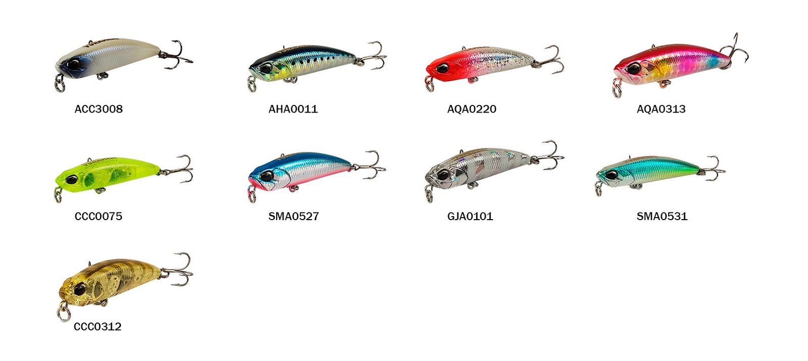 Tipo de señuelo: Micro minnow precisión extrema (imitación pez miniaturizada con tecnología ultra light) Especies objetivo: Trucha ultra-selectiva, Perca micro, Cacho miniaturizado, Black bass selectivo, Lucioperca pequeña Modalidad de pesca: Ultra light spinning precisión extrema