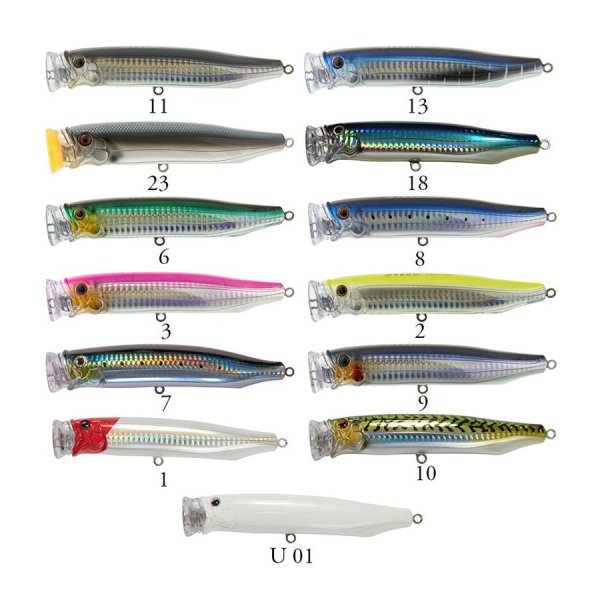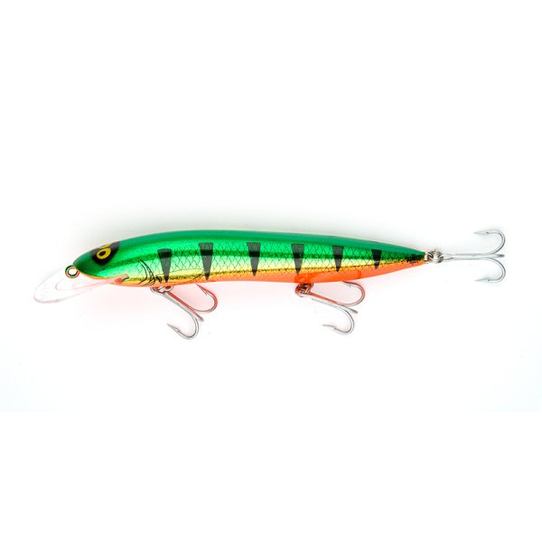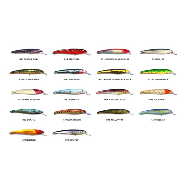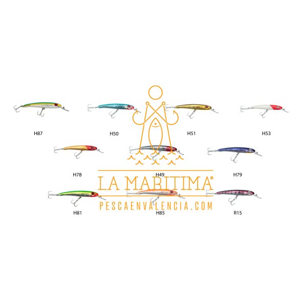 Los minnows de gran tamaño para denton de 120 a 180 milímetros que trabajan en media agua y fondo son ideales para esta especie. Estos señuelos de pesca deben tener construcción reforzada y colores que destaquen en aguas profundas. Son especialmente efectivos en técnicas de jigging y casting pesado desde embarcación.